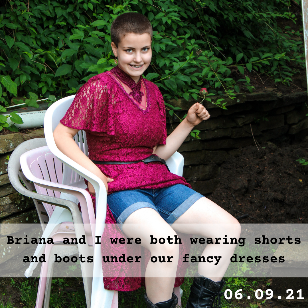 My school was originally not going to have a high school dance due to COVID, but a few parents teamed up and planned one for us! It was really fun. It took a bit for me to break out of my shell and dance and let loose, but better late than never! I wore pretty much everything I wore to graduation, but my hair was a bit different, and I brought a pair of flats to change into. See, my sisters and I went dress shopping, but I just bought more athletic clothing and spent probably too much money. Also, the dress I bought didn’t end up fitting the vibe for my outfit.