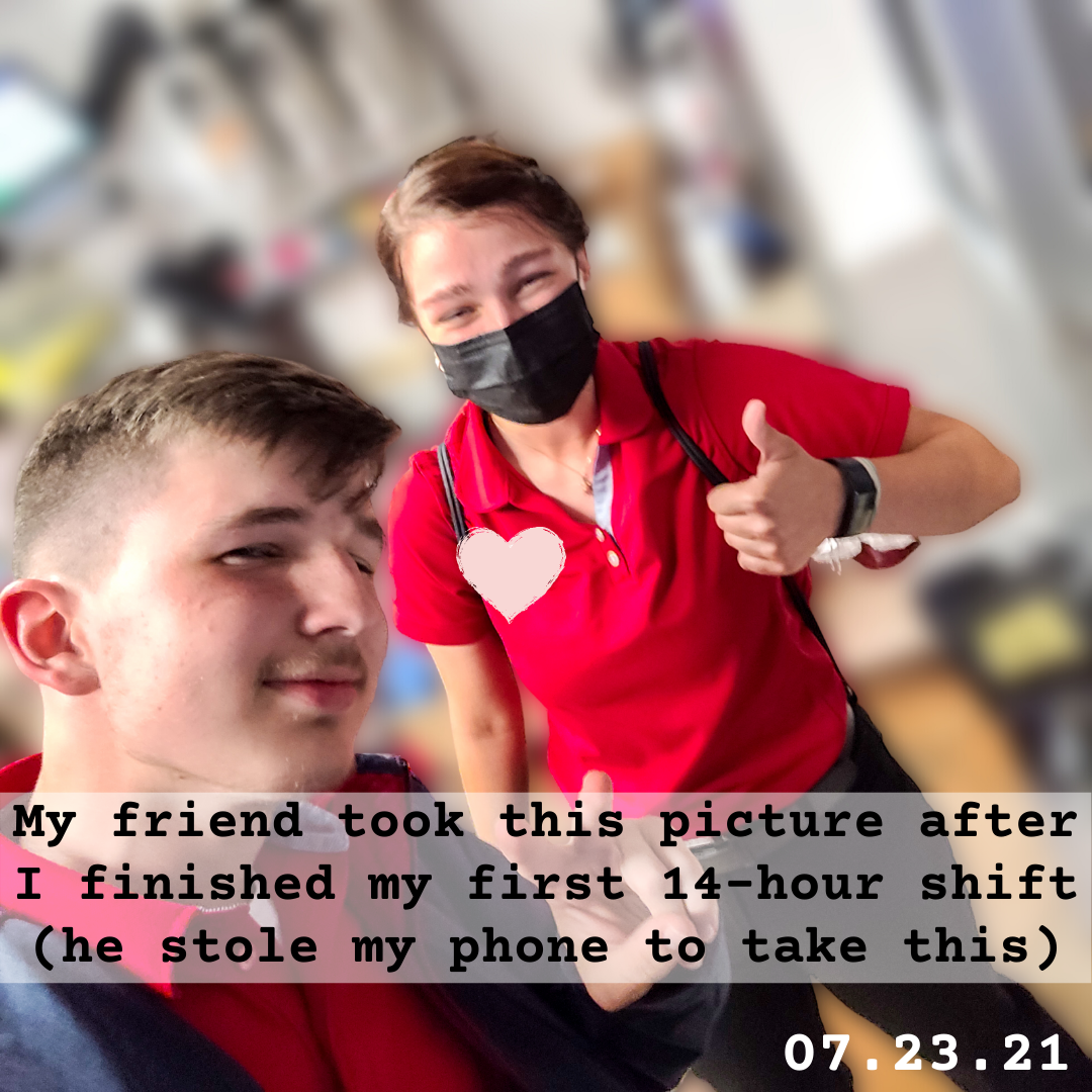 >> psst… in the image gallery, there are two pictures of me in uniform (one of which was taken after this 14-hour shift), and I have blocked out/blurred anything that could reveal where I work. It is for my own privacy’s sake, so please ignore any random hearts and blurred backgrounds, and please don’t try to guess where I work.