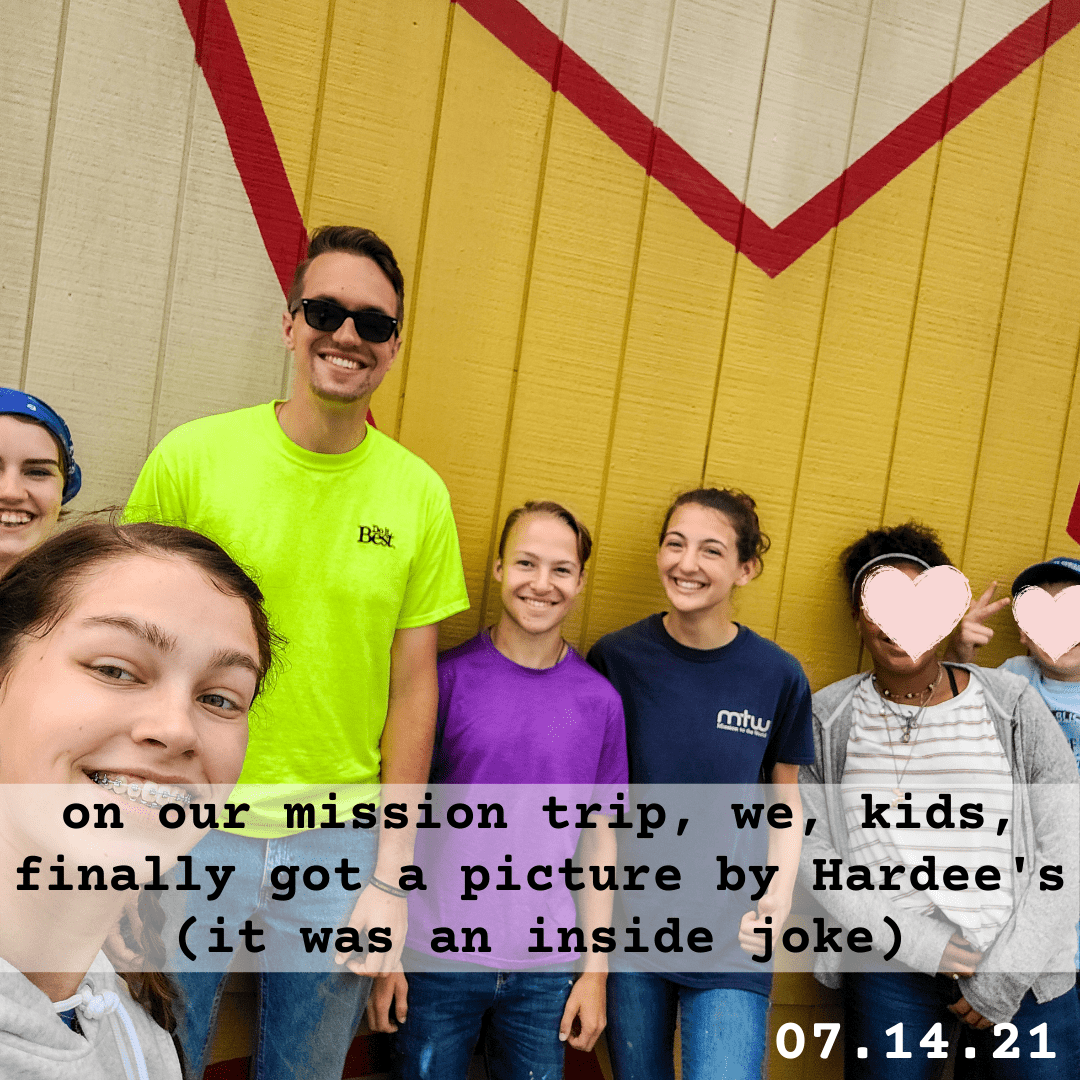 From July 10th to July 17th, my sisters, Emma and Briana, and I went with our church on the annual mission trip to Fairmont, West Virginia. I think I’ll make a blog post especially for that trip, but if not, you can read about last year’s trip right here. We stained/painted a lot, and on our day off, we went to a super fun watercourse where I learned that I’m actually stronger than I thought. We went to Texas Roadhouse for dinner on our day off, where they celebrated my and another girl’s birthdays. Overall, it was such a fun trip, and, as always, I can’t wait until next year.