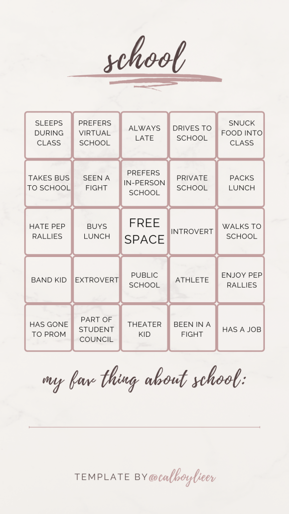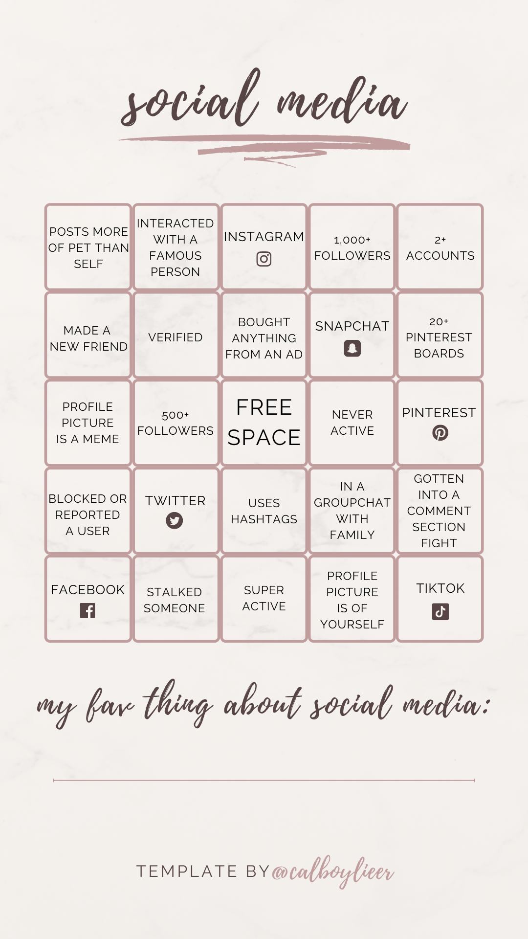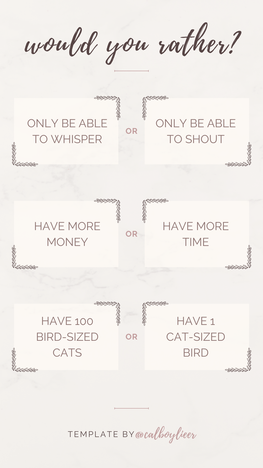 Below, I have created some of my own Instagram story templates for you to fill out. If you decide to download (or screenshot) the templates and give them a try, feel free to tag me (calboylieer) so I can see your responses!