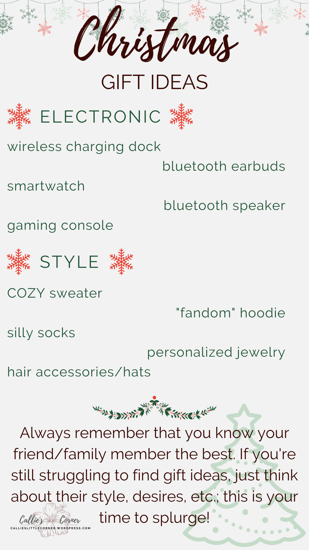 I like to think of Christmas as the Holiday of holidays (probably because it’s my favorite), but that means I want to get the big gifts for that day. Now, it’d be easier to do that if I had friends and such to give gifts to, but at least I have a bajillion siblings, y’know? Anyway, down below, I have listed gift ideas in two main topics: electronic and style. Since Christmas is the end of the year, close to New Years Day, I think of it as a time to splurge. Now, without further ado, scroll on down to see the gift ideas, peruse the gallery of my suggestions, and enjoy!
