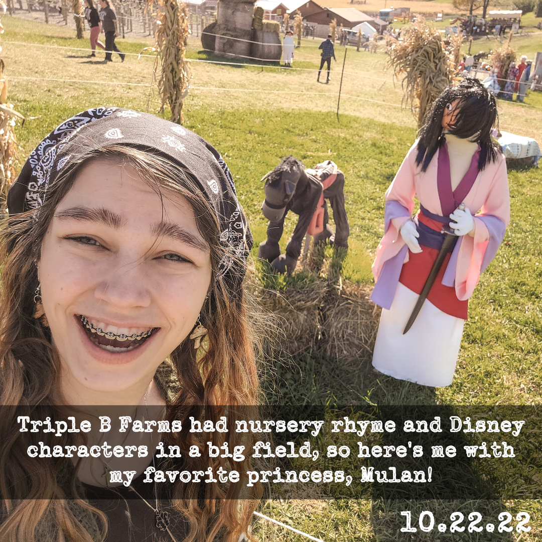 I went to this farm with my older sister, her fiancé, and another one of my friends. There was a lot more to do at this place. We went into two different mazes, bought some pumpkins, and saw goats, sheep, pigs, and even peacocks. In the first maze, we split (boys vs. girls), and Emma and I wanted to race the boys and be the first to escape. We got out, didn’t see the boys anywhere, waited for a bit, then went back inside to find them and brag to them. However, we learned that they were trying to find all the signs and had actually escaped about ten minutes earlier but went back inside to finish their little scavenger hunt. Later, we went into the second maze, which was bigger and even had a big lookout bridge. The boys beat us by literally a hair to the bridge and ended up getting out of the maze first, too. My older sister and I were on the bridge, trying to figure out how to escape, and we saw the boys playing basketball outside in the little activity field. We were going to try and escape without them, but they entered the maze again, so my older sister and I hid. They found my sister first, so I booked it and ran. However, I paused for a second too long and accidentally gasped, giving away where I was, so my friend (who plays soccer and is very athletic) ran after me. It was on rough terrain, I was wearing heeled boots, and I have no stamina, so he quickly caught me, but I could have escaped… probably. Again, it was another really fun time with some fun people; it was a great!
