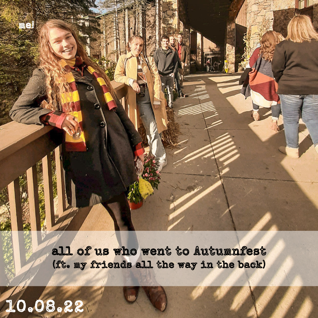 This was one of the first Fall festivities I went to this season. I went with my older sister, her fiancé, and two other friends, and since it was an hour away or so, we carpooled… in my future brother-in-law’s tiny car… It was interesting. I was in the middle of the back, squished between the other two guys, but honestly, it was for the better. I’m still getting over my car anxiety, so being in the back surrounded by friends made me feel safer and calmer. The festival itself was rather fun. I had enough self-control to not buy all the cool stuff from all the vendors, did some axe throwing for the first time, and saw two alpacas for the first time, too. I did alright with axe throwing; I hit the target about half the times, I’d say. Overall, it was really fun and a great time with great friends.
