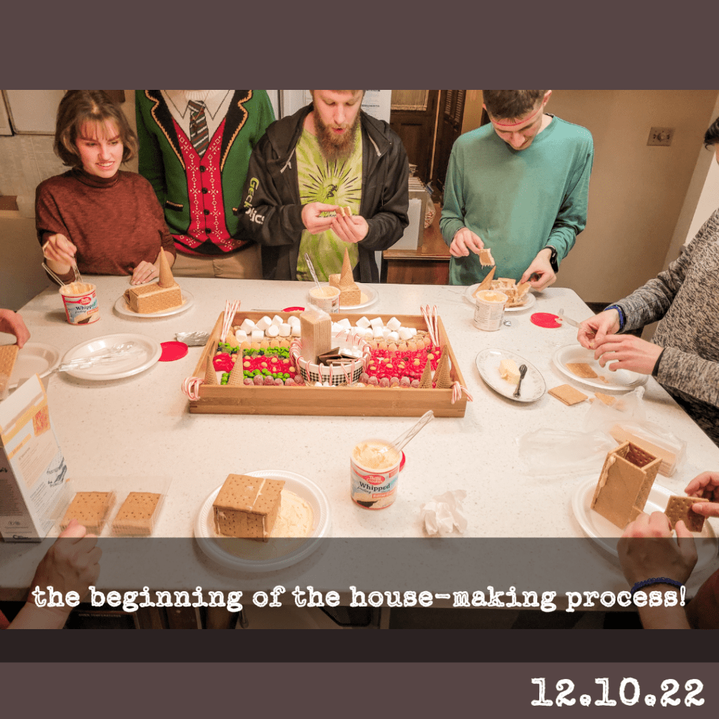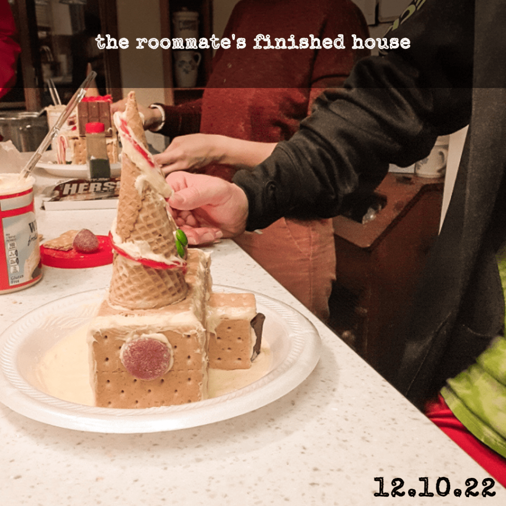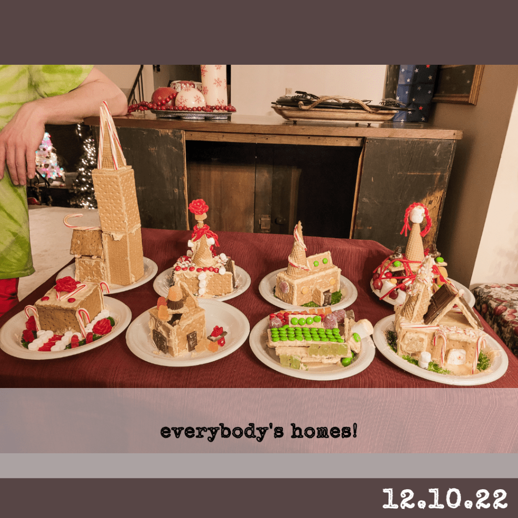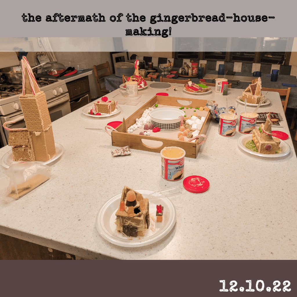 Since I live in a house, I try to use as much of the room as needed since I have so much. We have an open plan so our dining room and living room sort of mesh together, but the dining room “area” is mainly reserved for eating; that’s where the food and drinks are and the table is already fully set. The kitchen is used to hold any extra foods on the counters or stoves and the island table is for the food-related activity; gingerbread home-making. The living room is ready for mingling and socializing and has board games on the coffee table in case folks want to break those out and play a game or two. Figure out a plan in the best way possible for the space you have. Don’t stress yourself out either, trying to make sure everything looks perfect. People are there to have fun and socialize; not for a beyond-perfect home and beautiful, expensive centerpieces.