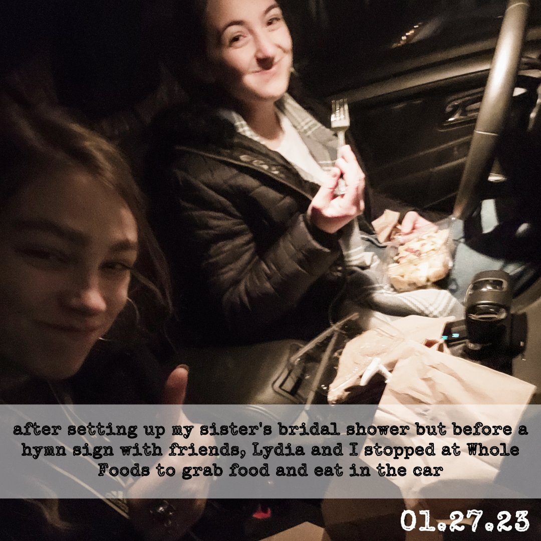 My fellow maid-of-honor, Lydia, and I planned and hosted my older sister’s bridal shower. I have only been to one bridal shower, so I was very glad to have a bunch of extra help. We made the theme a Vintage Tea Party and used a ton of my mom’s vintage decor as well as some of her beautiful tea cups, to make the centerpieces. It took us about two-ish months, and it was super scary, but my older sister seemed to enjoy it, so that’s all that matters!