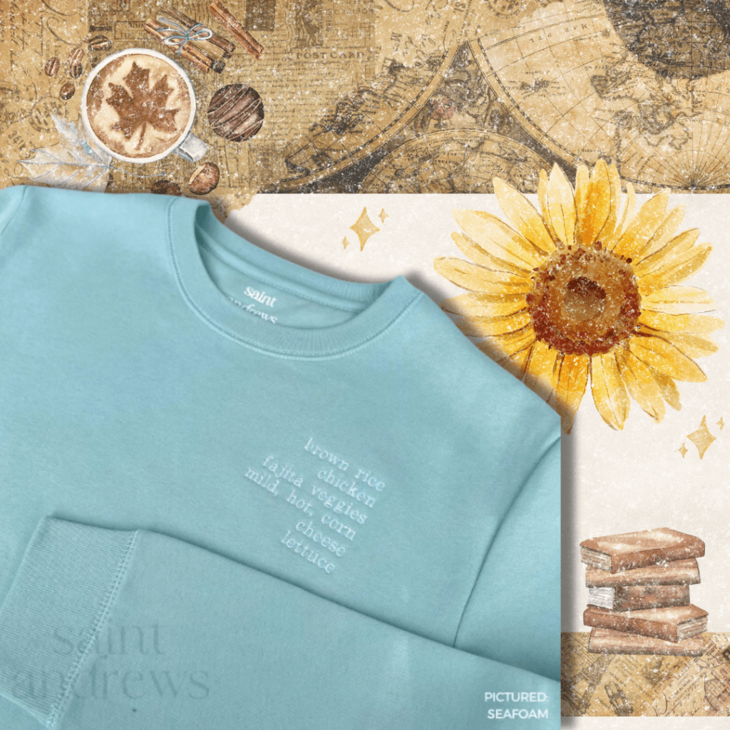 Although it’s not displayed in this picture, you can put a custom coffee order on this sweatshirt! If the coffee drinker you love has a go-to order, you can type it out in the customization bar and give them a truly personal gift!
