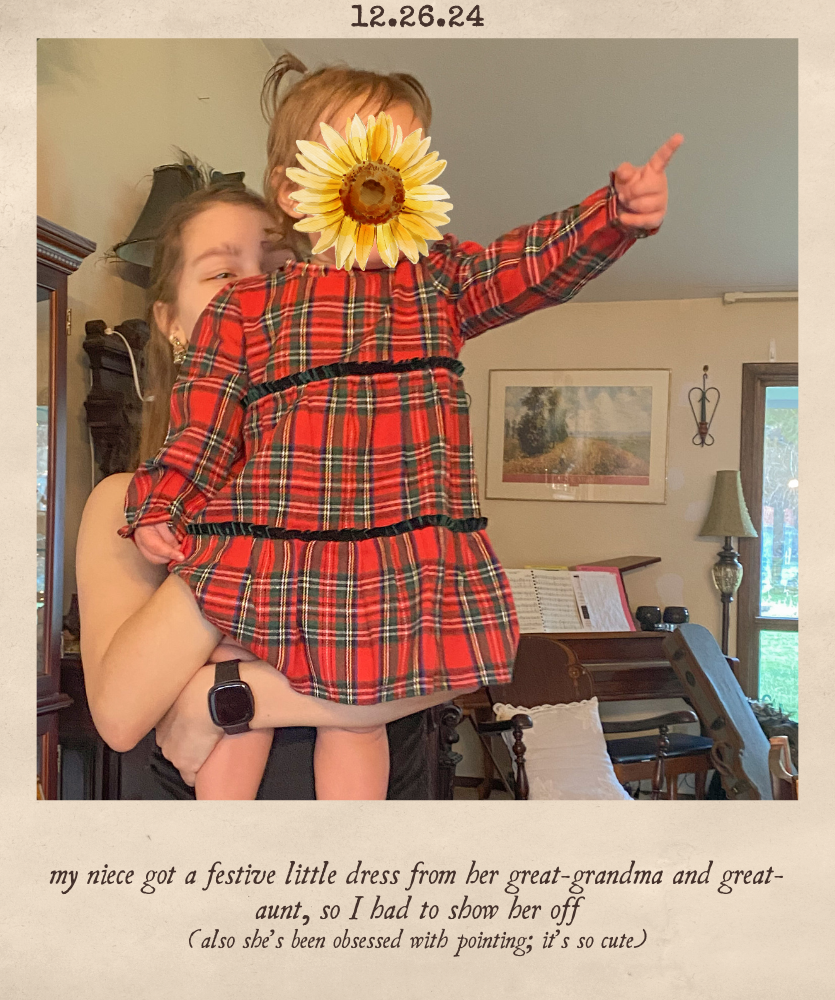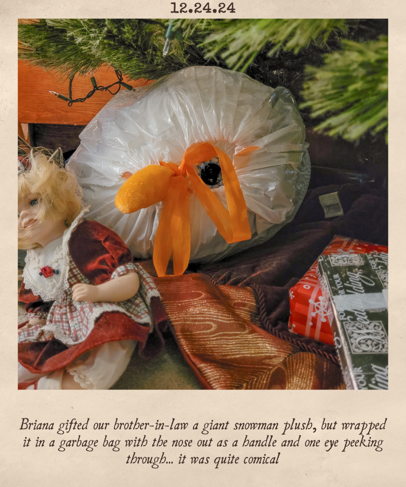 Since my family is expanding, mostly due to my sister getting married, we celebrated Christmas across three days! My sister, Emma, and her family came over in the afternoon where we hung out then exchanged gifts before our Christmas Eve service. We also did our iconic “Secret Sibling” grabbag, which is always fun. My boyfriend met up with me at the Christmas Eve service, then we went to his parent’s house where I met his immediate family as well as some folks from his dad’s side. I ended up staying and hanging out until long after everyone else left; it was just me, him, and his parents. It was technically Christmas morning when I left, and we all wished each other “Merry Christmas” a few minutes after midnight struck.