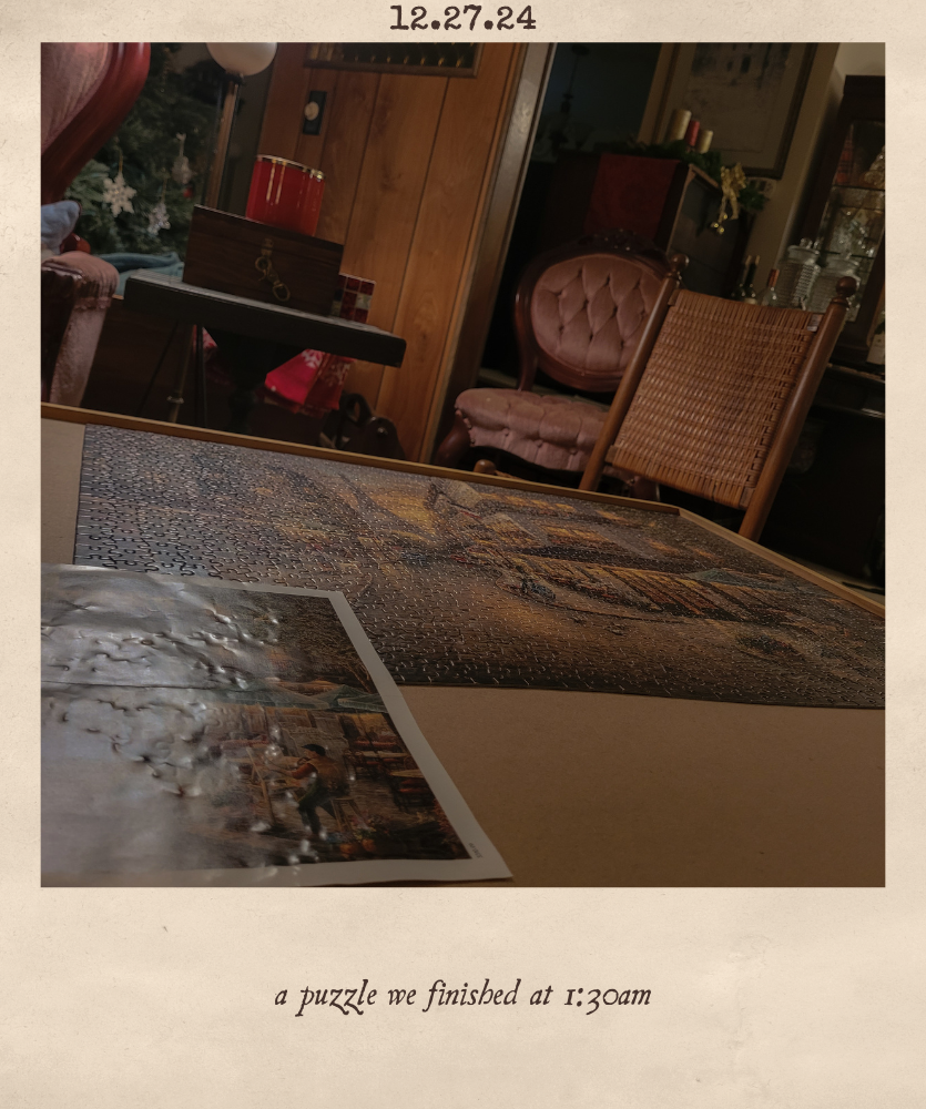 This was when we had our big Christmas dinner. It was earlier in the afternoon because my best friend, Mandi, and her boyfriend had somewhere to be in the evening. It was quite nice, however, to have it earlier. We spent the rest of the evening watching some Christmas movies, hanging out, and my boyfriend and I finished a puzzle I had been working on!