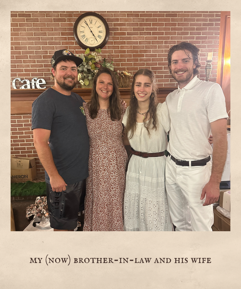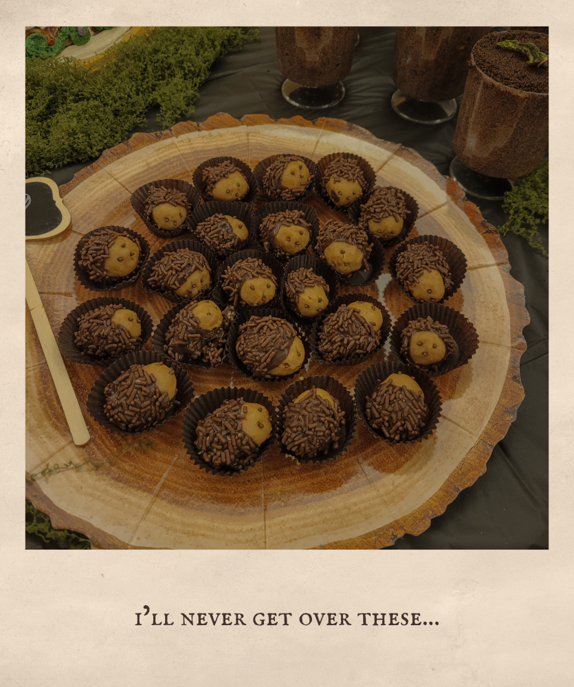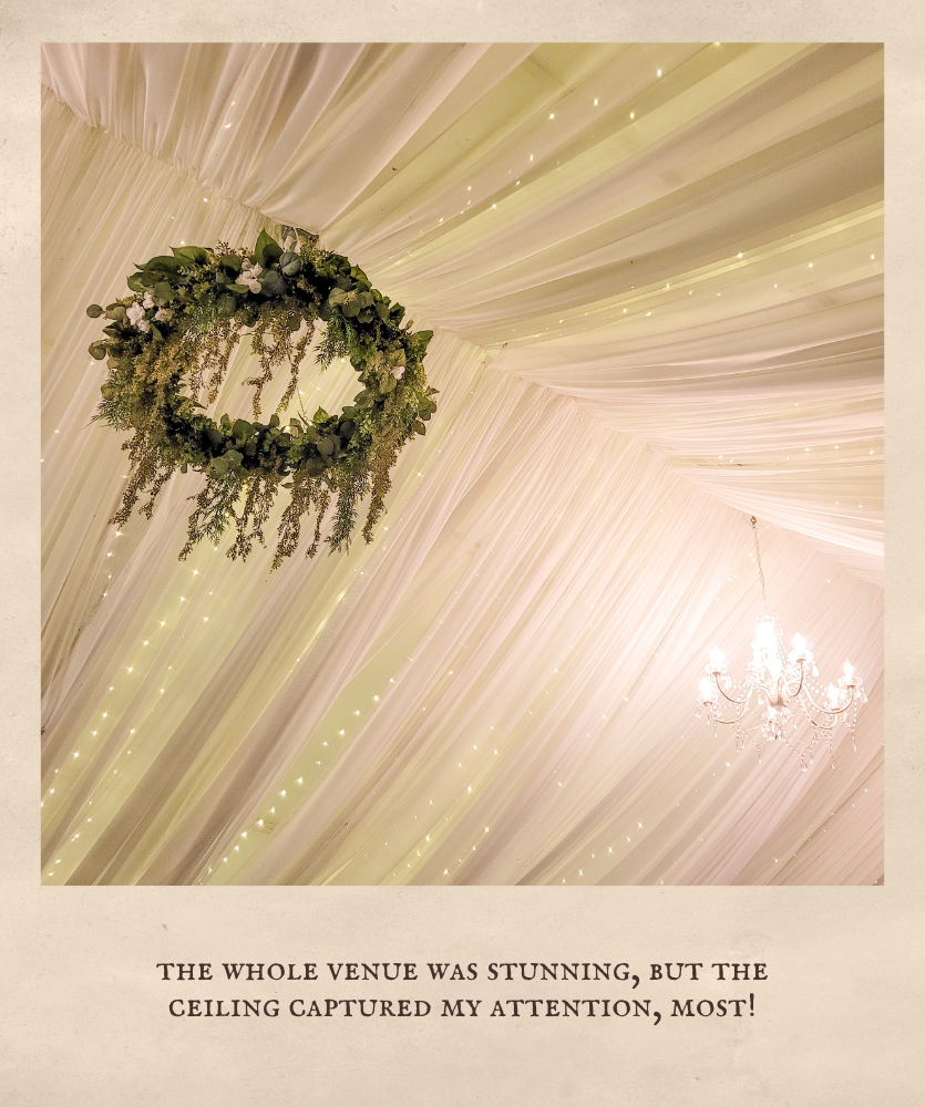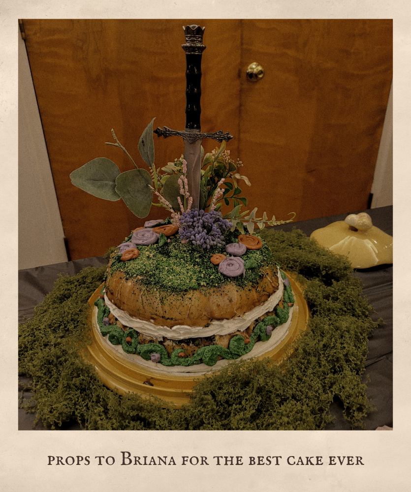 My bridal shower was held about a month before the wedding, and I left pretty much all of it up to my older sister, Emma, who was my Matron of Honor! It was Enchanted Forest themed, and she absolutely killed it! Even the food was themed (see picture of menu down below), with snacks called, “hedgehogs,” “ladybugs on a flower,” and “mushrooms.” My younger sister, Briana, made the cake, and I don’t think I will ever get over how amazing it was! It was such a wonderful time of fellowship, gifts, and fun!