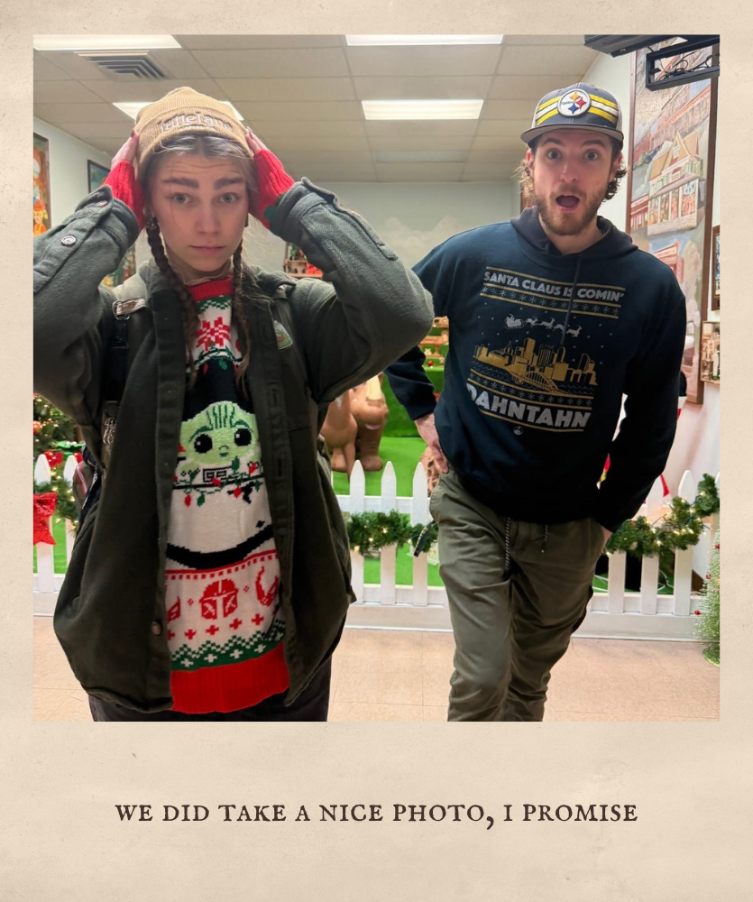 In the month of December, we had some Christmas-y going on every weekend! We went to two Christmas-y stores with my in-laws, then celebrated our annual Friendsgivingmas the next weekend. Mid-December, my husband brought to my attention the Bellefonte Victorian Christmas in Central PA. We embarked for the last day of their weekend festival, but it was amazing to just see the small, old town! We also went to an annual Christmas party hosted by some family friends of mine, the Saturday before Christmas! It was so wonderful to celebrate all month, but it also reminded me of December 2024, when my husband and I first met and were getting to know each other!