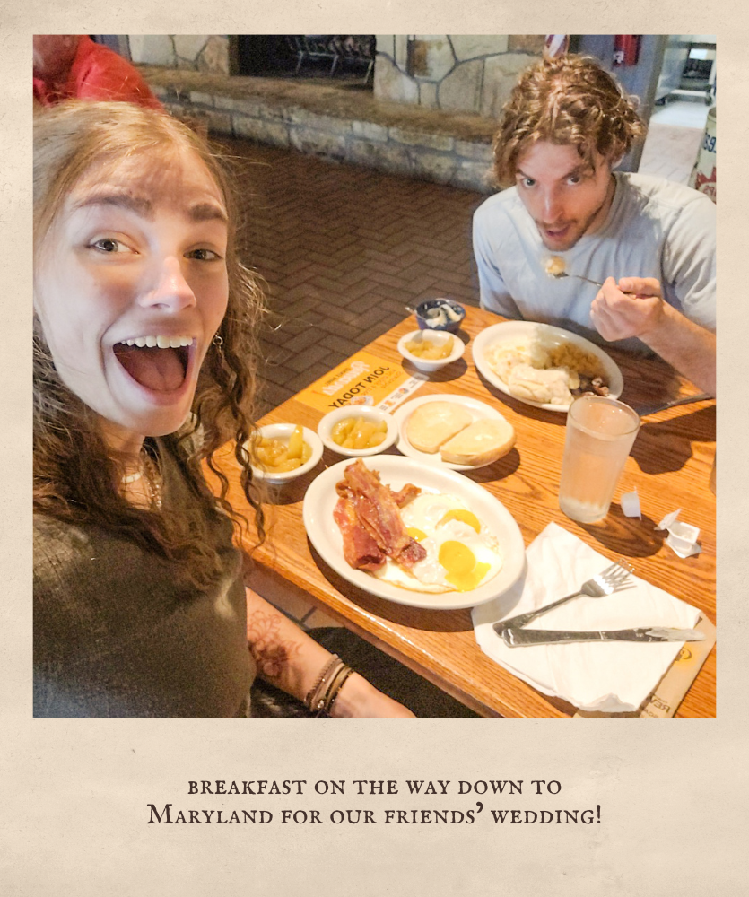 I went on a few trips these past months. I went to Baltimore, Maryland for a weekend with some friends, a weekend camping trip in Parker Dam State Park with my dad and younger sisters, and then a 2-week long roadtrip with my husband to the Southwest US for our honeymoon! They were all such amazing times. In Baltimore, we all stayed at an AirBnB together and the wedding itself was beautiful! While camping, we stayed on the campground one night, then backpacked into the woods and slept there the next; it was such a cool park! I’ll be making a separate post about the honeymoon (stay tuned!), but we made it across the whole country, going as far as Sequoia National Park in California!